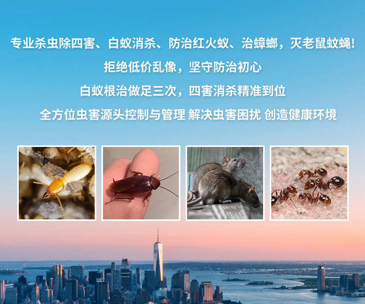 公司主要承接:佛山白蚁防治,佛山新建房屋预防白蚁工程,南海室内装修预防白蚁工程,佛山杀灭白蚁,三水房屋杀白蚁,禅城家庭杀灭白蚁服务,高明厂区仓库灭治白蚁工程,住宅小区、顺德花园别墅灭治白蚁工程,南海水库堤坝白蚁防治,园林、佛山古树白蚁防治。佛山四害消杀,南海除四害(蚊、蝇、蟑螂、老鼠)消杀工程,顺德厂区四害消杀,三水厂房除四害服务,禅城街道四害消杀工程,高明厂区杀虫灭老鼠,各种环境大型灭老鼠工程,室外草坪绿化大面积杀灭红火蚁服务。本公司服务遍布整个广州与佛山地区白蚁防治工程、别墅白蚁灭治工程、工厂企业防治白蚁工程、园林水库白蚁防治。本公司是广东白蚁防治的专家,现有先进的白蚁防治与消灭白蚁的技术,多年的白蚁防治技术与经验,所以值得信赖。